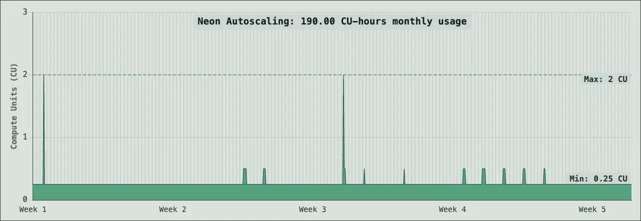 Remember that when your database is idle, compute can scale down to zero, so you don't consume CU-hours while it's not running. Learn more about Neon's billing.